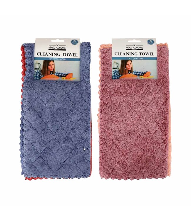 5PK SOLID MICROFIBER CLEANING CLOTH AST 12x12"