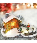 LAUREN TAYLOR LED CHRISTMAS HOUSE w/KIDS SKIING DECOR 7.5" x5.3"x 5"