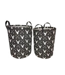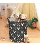 LAUREN TAYLOR DEER PRINT CANVAS COTTON BLEND ROUND HAMPER BLACK/WHITE