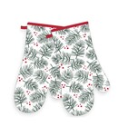 WOVEN PAIR OF CHRISTMAS OVEN MITTS w/METALLIC THREAD FESTIVES BRANCHES
